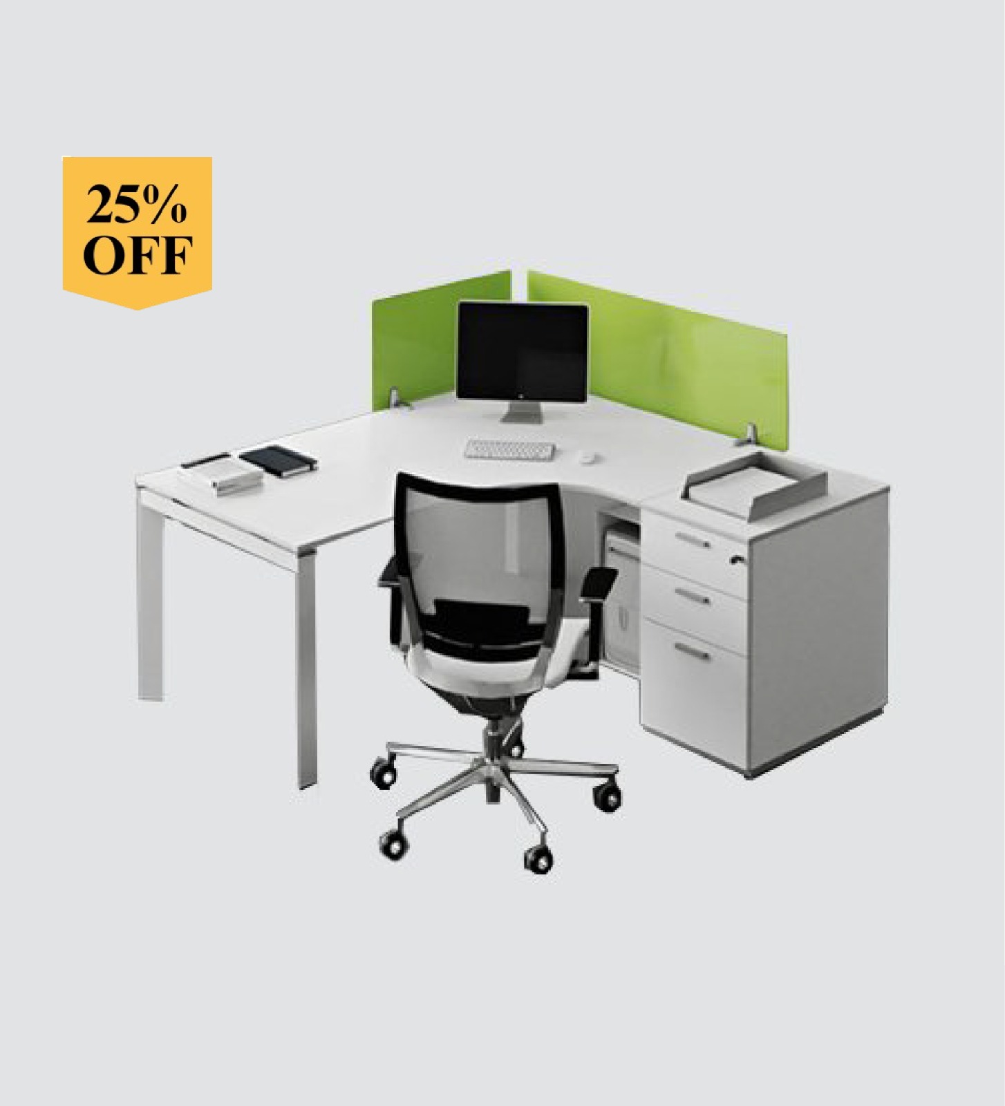 Front partition with a soft board covered with color fabric to pin up the notes.