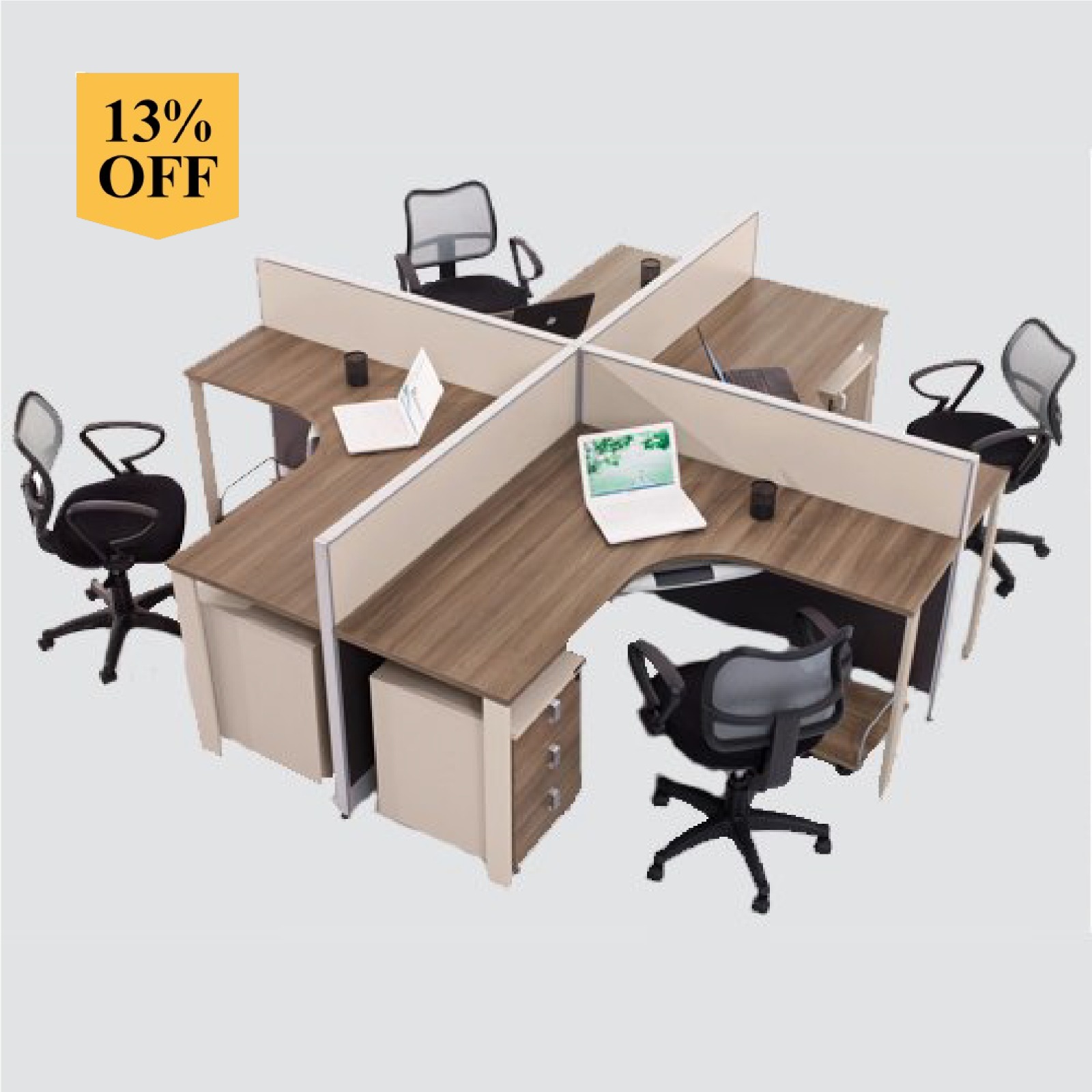 Workstation for 04 persons with 04 mobile pedestals.