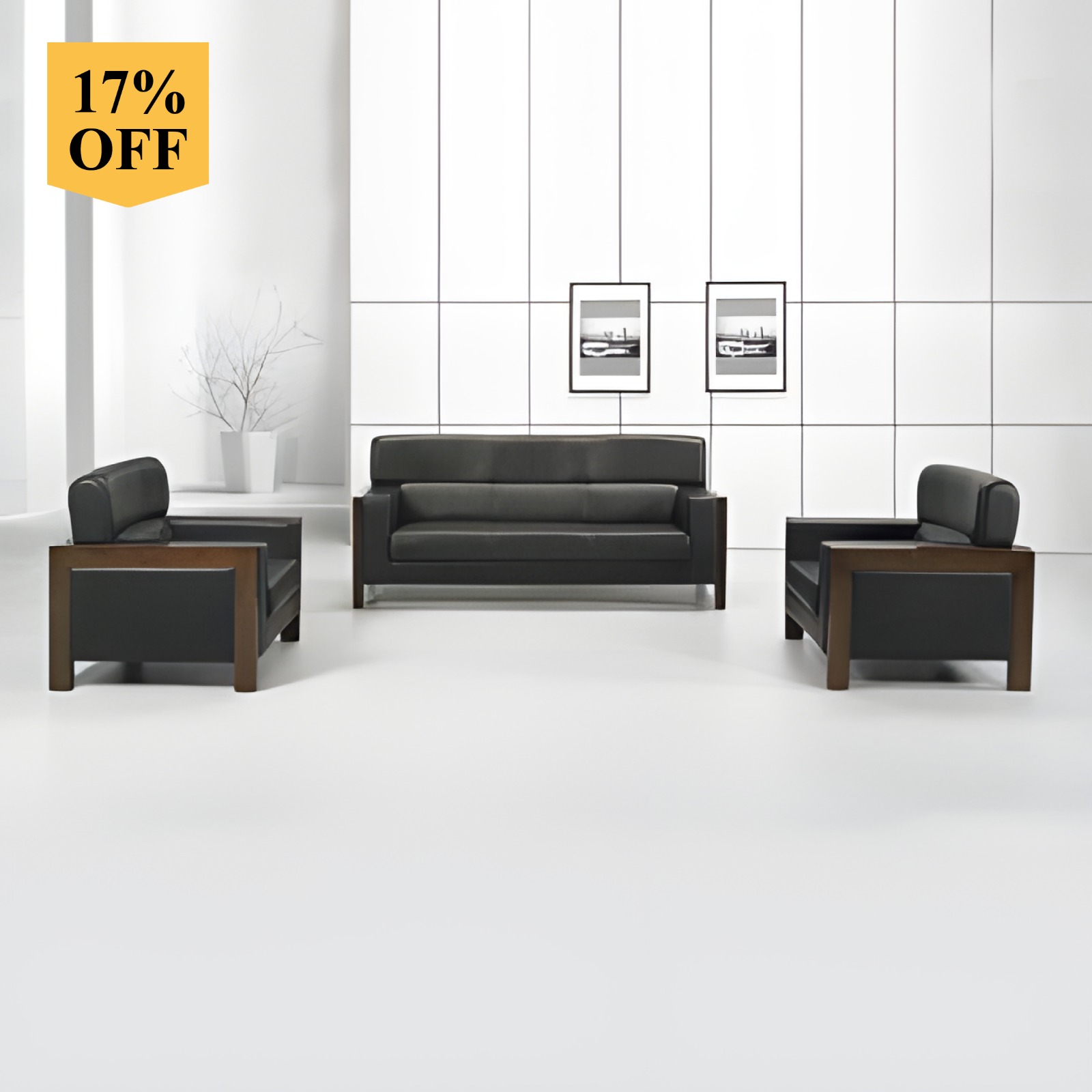 The armrest and legs are made of solid seasoned wood in a high-quality polish finish.